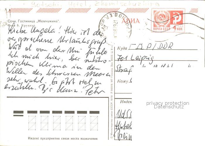 old postcard Sotschi Hotel Zhemtschuzhina postalisch gelaufen