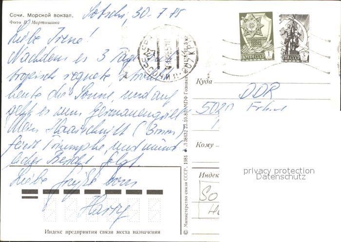 old postcard Sotschi Marine Station Passagierschiff postalisch gelaufen Erhaltung siehe scans