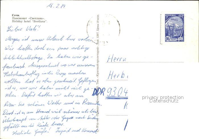 old postcard Sotschi Pension Svetlana postalisch gelaufen Erhaltung siehe scans