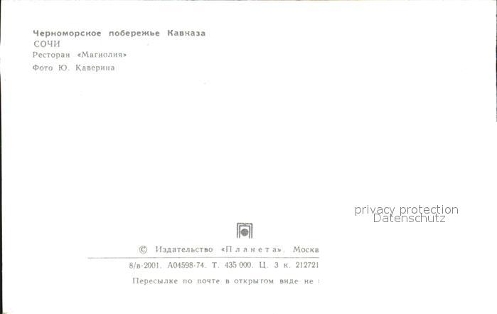Sotschi Restaurant Magnolia postalisch nicht gelaufen Keine Postkarte (siehe scan) Erhaltung siehe scans