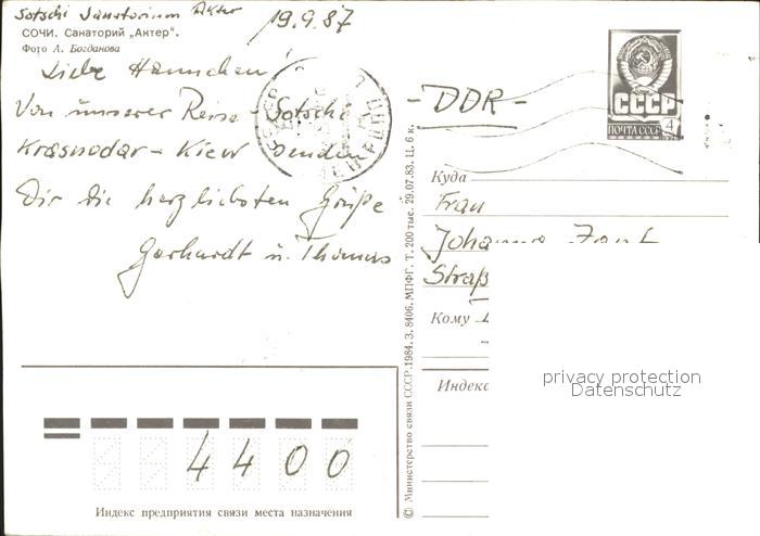 old postcard Sotschi Sanatorium Akter postalisch gelaufen Erhaltung siehe scans