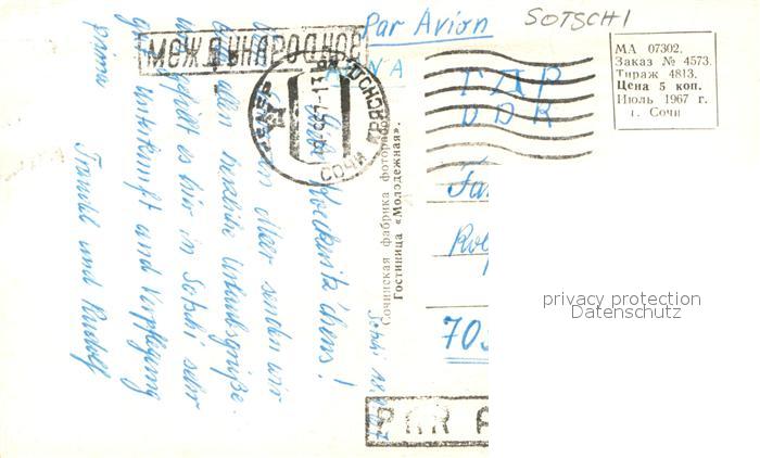 old postcard Sotschi Sochi Hotel postalisch gelaufen Erhaltung siehe scans [WerneD78]
