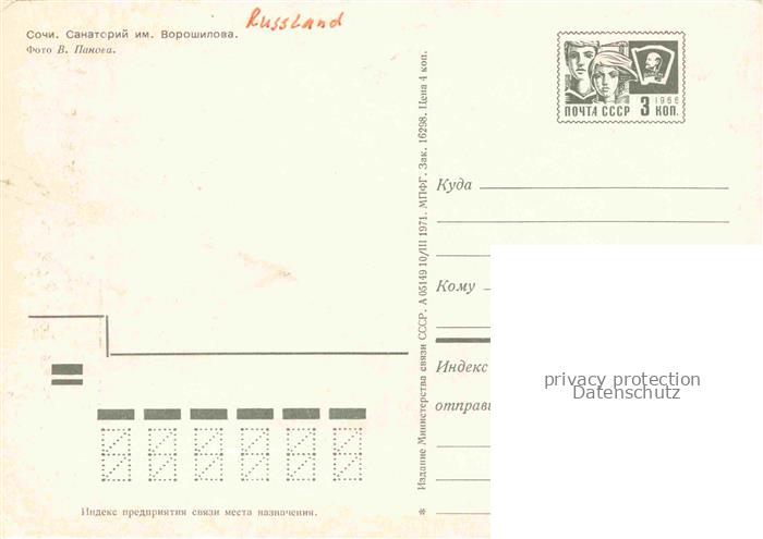 74040311 SOTSCHI Sochi RU Sanatorium Woroschelowa postalisch nicht gelaufen Erhaltung siehe scans [IrynaD87] KatCode: 11440