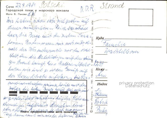old postcard Sotschi Strand postalisch gelaufen Erhaltung siehe scans