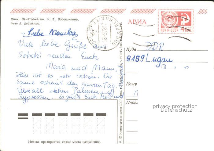 old postcard Sotschi Woroschilow Sanatorium postalisch gelaufen Ganzsache (eingedruckte Briefmarke) Erhaltung siehe scans [NatalD47]