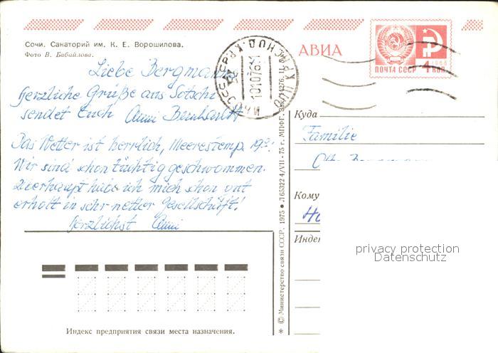 old postcard Sotschi Woroschilow Sanatorium postalisch gelaufen Ganzsache (eingedruckte Briefmarke) Erhaltung siehe scans [NatalD47]