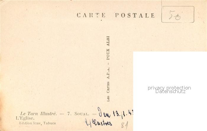 13485503 Soual Eglise postalisch nicht gelaufen Erhaltung siehe scans [FriedD77] KatCode: 11170081281289
