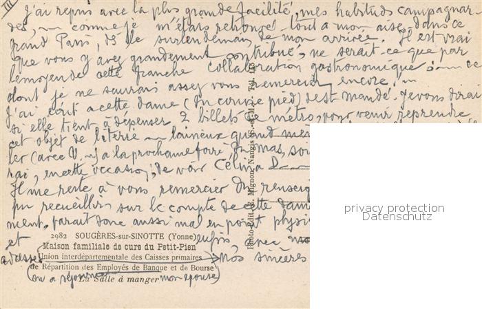 13538147 Sougeres sur Sinotte Maison familiale de cure du Petit Pien postalisch nicht gelaufen Erhaltung siehe scans [WerneD78] KatCode: 11170089189400