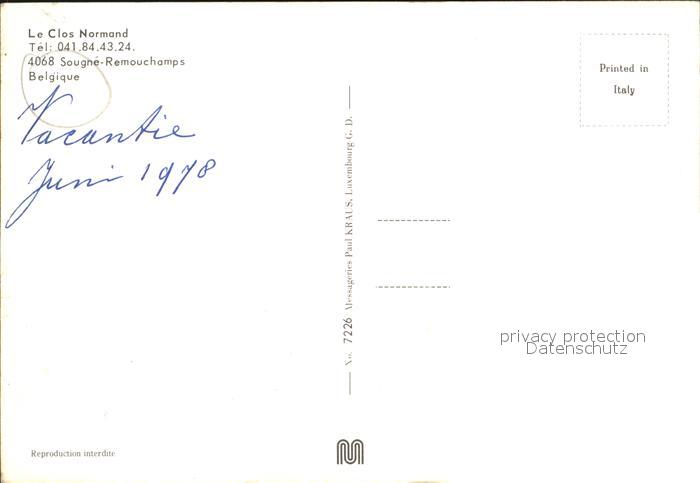 72414661 Sougne-Remouchamps Le Clos Normand postalisch nicht gelaufen Erhaltung siehe scans KatCode: 11070062001431