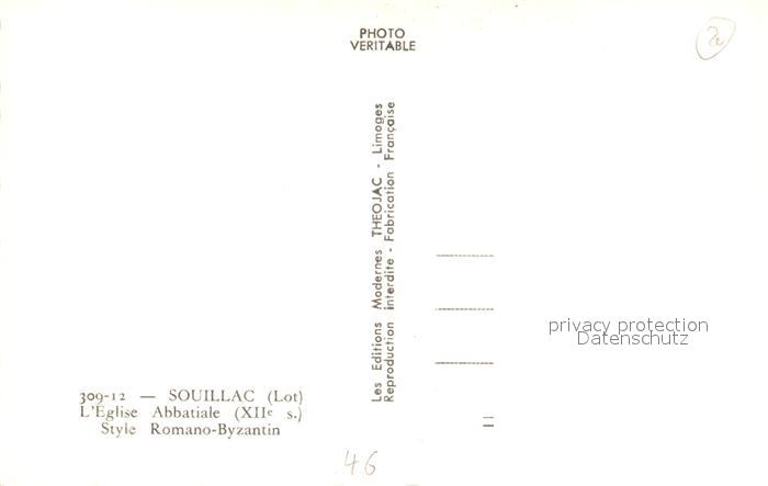 13505682 Souillac Eglise Abbatiale XIIe siècle style romano byzantin postalisch nicht gelaufen Erhaltung siehe scans [FriedD77] KatCode: 11170046346309