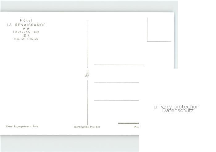 12921802 Souillac Hotel La Renaissance postalisch nicht gelaufen Erhaltung siehe scans [NatalD47] KatCode: 11170046346309