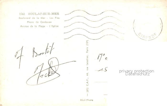 13584974 Soulac-sur-Mer Boulevard de la Mer Les Pins Phare de Cordouan Avenue de la Plage Eglise postalisch gelaufen Erhaltung siehe scans [FriedD77] carte postale Frie Katcode 11170033433514