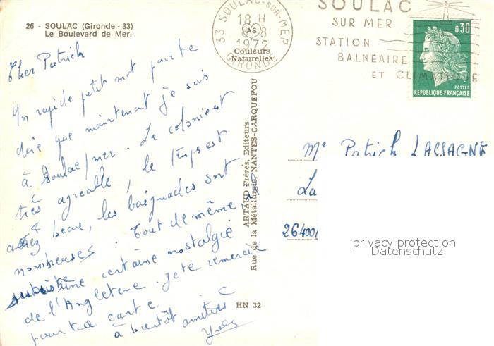 13560558 carte postale Soulac-sur-Mer Boulevard postalisch gelaufen Erhaltung siehe scans [LiesaD40] KatCode: 11170033433514