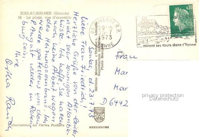 13320624 carte postale Soulac-sur-Mer Plage postalisch gelaufen Erhaltung siehe scans [PaolaD17] KatCode: 11170033433514