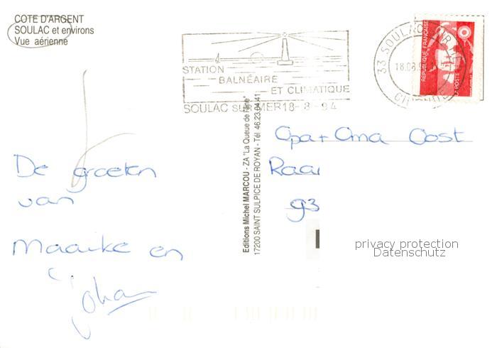 13796059 Soulac-sur-Mer Vue aerienne postalisch gelaufen Erhaltung siehe scans [WerneD78] carte postale Wern Katcode 11170033433514