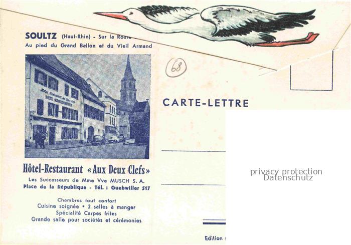 14105140 Soultz Elsass Sulz Guebwiller 68 Haut-Rhin Landkarte Vogesen Trachten Hôtel Restaurant Aux Deux Clefs postalisch nicht gelaufen Erhaltung siehe scans [FriedD77] KatCode: 11170068368315