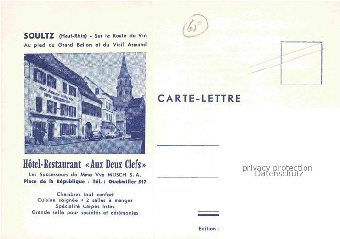 14105141 Soultz Elsass Sulz Guebwiller 68 Haut-Rhin Landkarte Vogesen Trachten Hôtel Restaurant Aux Deux Clefs postalisch nicht gelaufen Erhaltung siehe scans [FriedD77] KatCode: 11170068368315