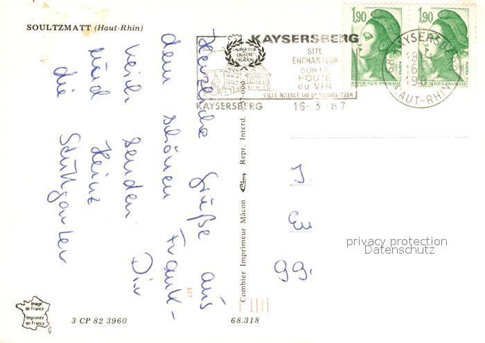 13606747 carte postale Soultzmatt postalisch gelaufen Erhaltung siehe scans [LiesaD40] KatCode: 11170068368318