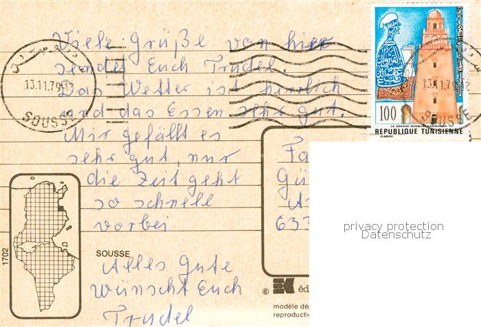 73851937 old postcard SOUssE Tunesie Fliegeraufnahme postalisch gelaufen Erhaltung siehe scans [WerneD78] KatCode: 18520