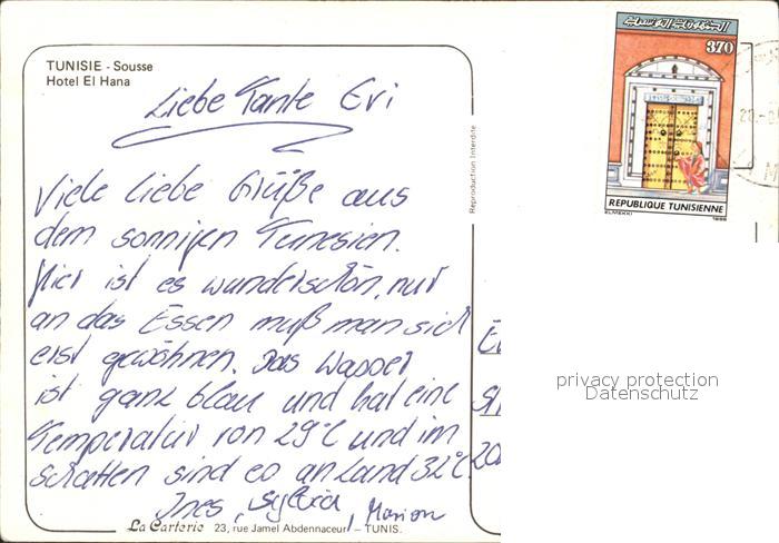 old postcard SOUssE Tunesie Hotel El Hana postalisch gelaufen Erhaltung siehe scans