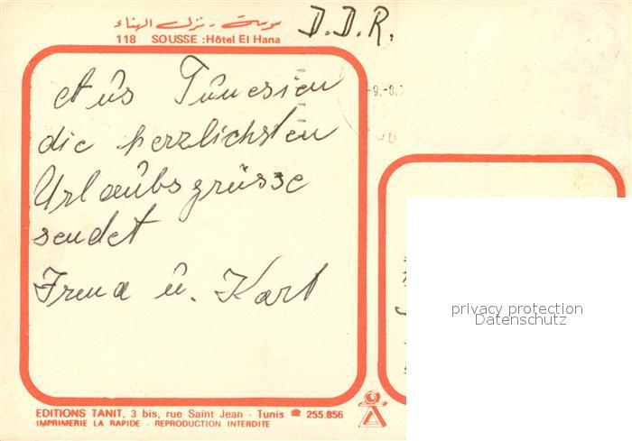old postcard SOUssE Tunesie Hotel El Hana Swimming Pool postalisch gelaufen Erhaltung siehe scans [FriedD77]
