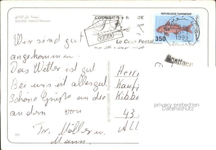 old postcard SOUssE Tunesie Hotel El Mouradi postalisch gelaufen Erhaltung siehe scans