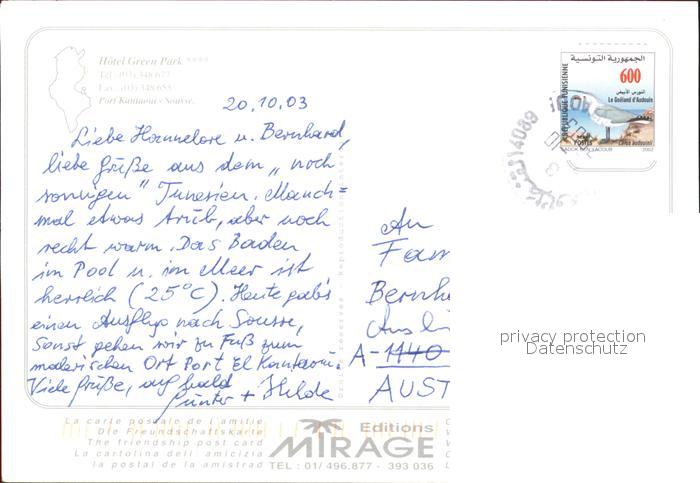 old postcard SOUssE Tunesie Hotel Green Park postalisch gelaufen Erhaltung siehe scans