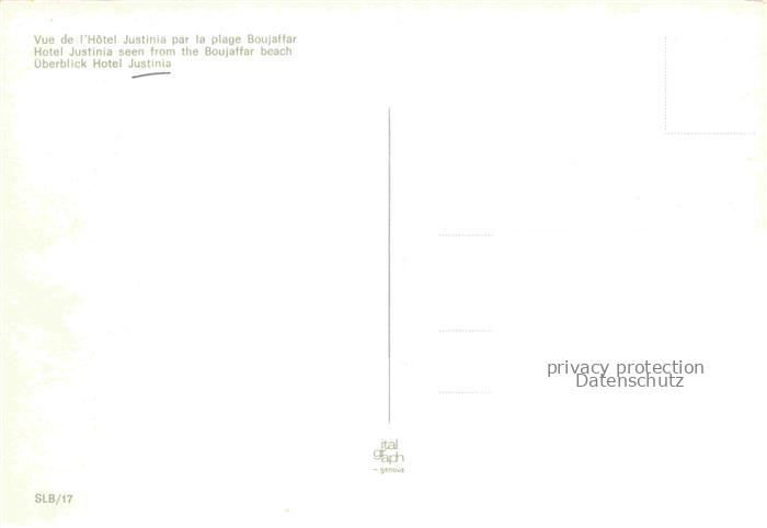74026858 SOUssE Tunesie Hotel Justinia Boujaffar Beach postalisch nicht gelaufen Fliegeraufnahme Erhaltung siehe scans [FriedD77] KatCode: 18520