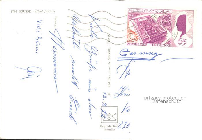 old postcard SOUssE Tunesie Hotel Justinia Strand postalisch gelaufen Erhaltung siehe scans