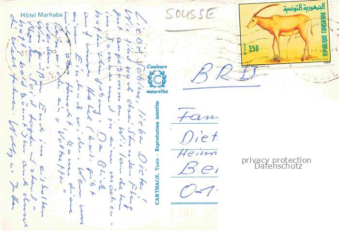 74038954 old postcard SOUssE Tunesie Hotel Marhaba postalisch gelaufen Erhaltung siehe scans [FriedD77] KatCode: 18520