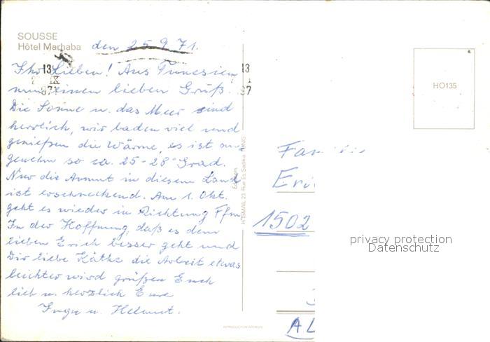 old postcard SOUssE Tunesie Hotel Marhaba Fliegeraufnahme Garden Taenzerinnen Swimmingpool postalisch gelaufen Erhaltung siehe scans