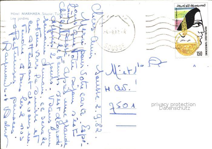 old postcard SOUssE Tunesie Hotel Marhaba Les jardins postalisch gelaufen Erhaltung siehe scans