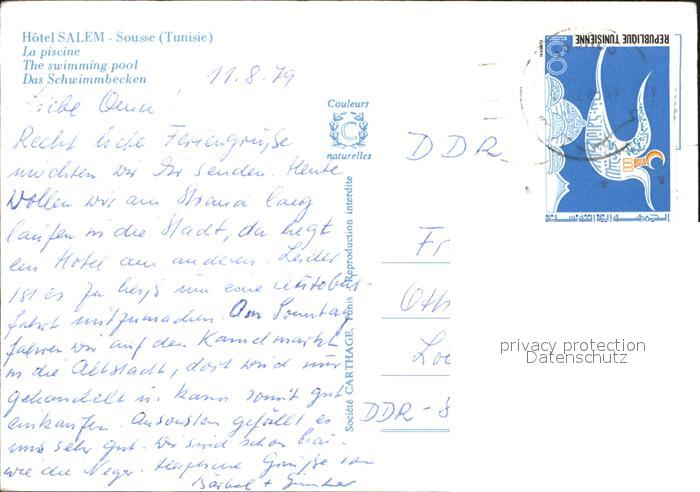 old postcard SOUssE Tunesie Hotel Salem postalisch gelaufen