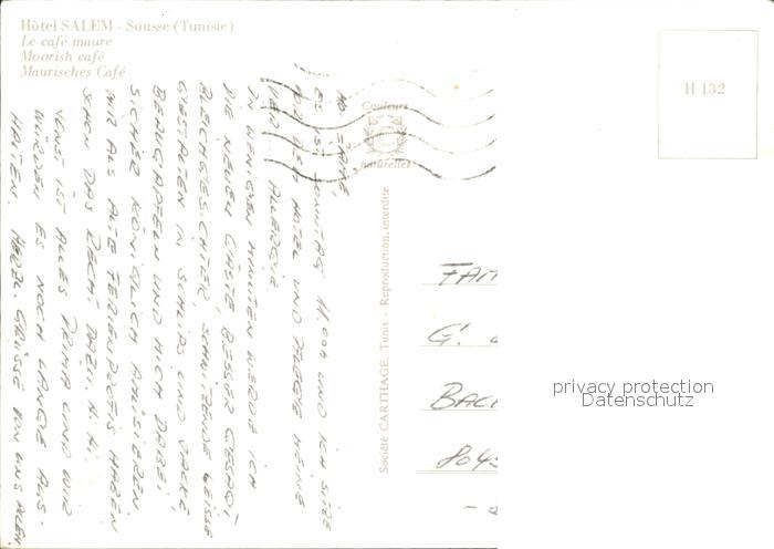 old postcard SOUssE Tunesie Hotel Salem Cafe maure postalisch gelaufen Erhaltung siehe scans