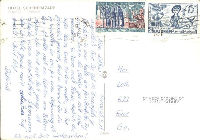 old postcard SOUssE Tunesie Hotel Scheherazade Piscine postalisch gelaufen Erhaltung siehe scans