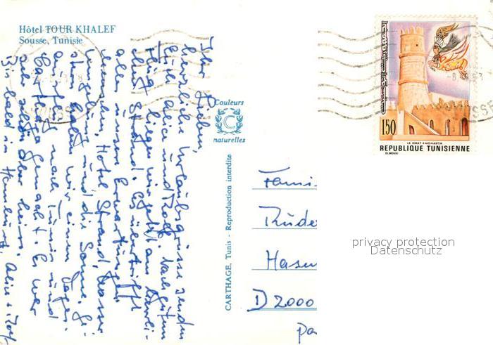 old postcard SOUssE Tunesie Hotel Tour Khalef postalisch gelaufen Erhaltung siehe scans [WerneD78]