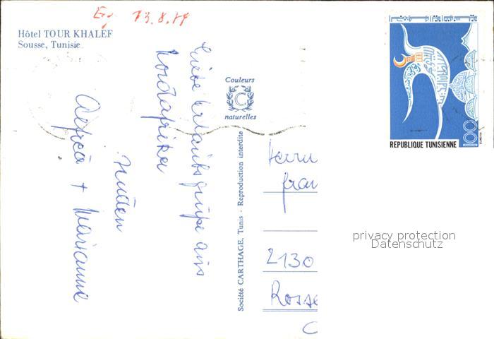 old postcard SOUssE Tunesie Hotel Tour Khalef postalisch gelaufen Erhaltung siehe scans
