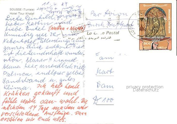 old postcard SOUssE Tunesie Hotel Tour Khalef postalisch gelaufen Erhaltung siehe scans