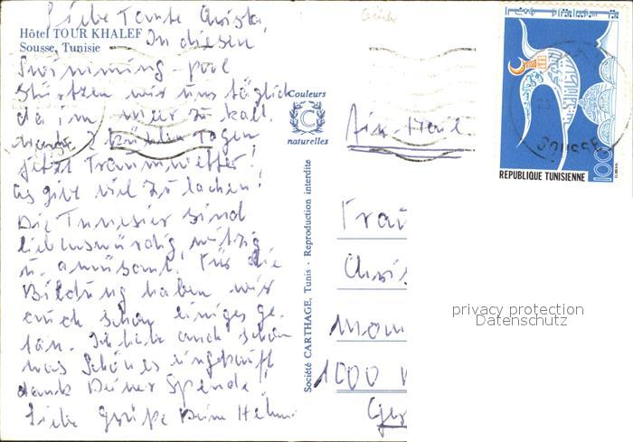 old postcard SOUssE Tunesie Hotel Tour Khalef postalisch gelaufen Erhaltung siehe scans