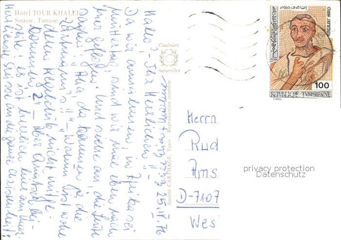 old postcard SOUssE Tunesie Hotel Tour Khalef Lobby postalisch gelaufen Erhaltung siehe scans