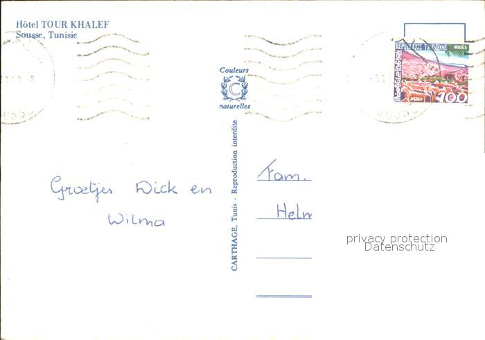 old postcard SOUssE Tunesie Hotel Tour Khalef Pool postalisch gelaufen Erhaltung siehe scans