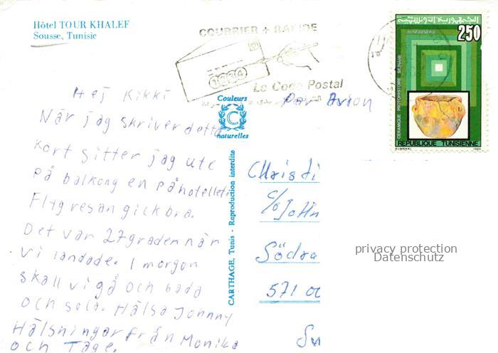 74148754 old postcard SOUssE Tunesie Hotel Tour Khalef Swimming Pool postalisch gelaufen Erhaltung siehe scans [FriedD77] KatCode: 18520