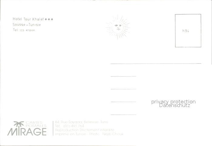 SOUssE Tunesie Hotel Tour Khalef Touristenbahn postalisch nicht gelaufen Erhaltung siehe scans