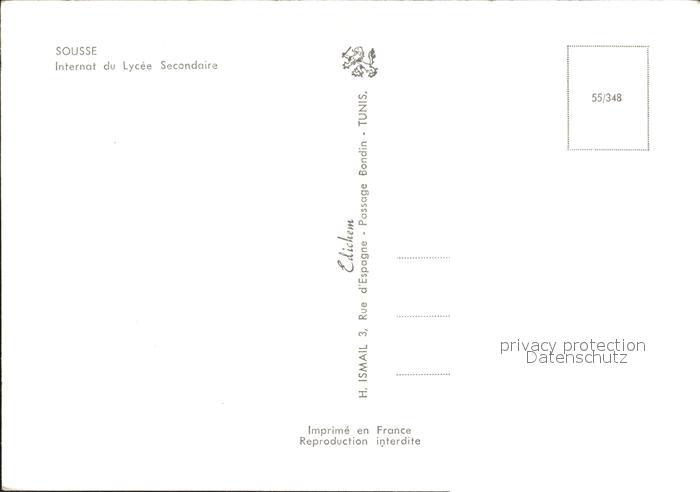 SOUssE Tunesie Internat du Lysee Secondaire postalisch nicht gelaufen Erhaltung siehe scans