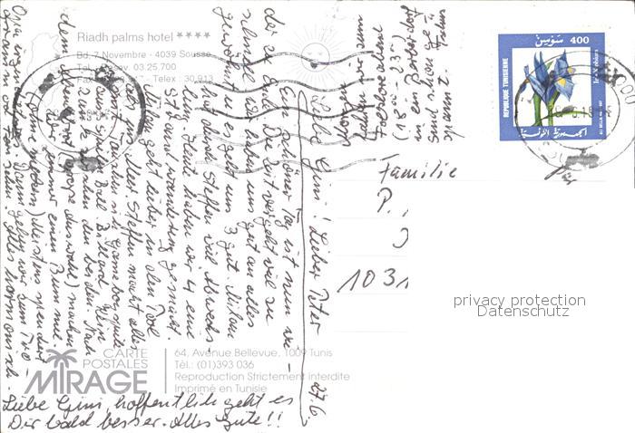 old postcard SOUssE Tunesie Riadh Palms Hotel postalisch gelaufen Erhaltung siehe scans