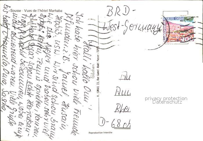 old postcard SOUssE Tunesie Vues de l Hotel Marhaba postalisch gelaufen Erhaltung siehe scans