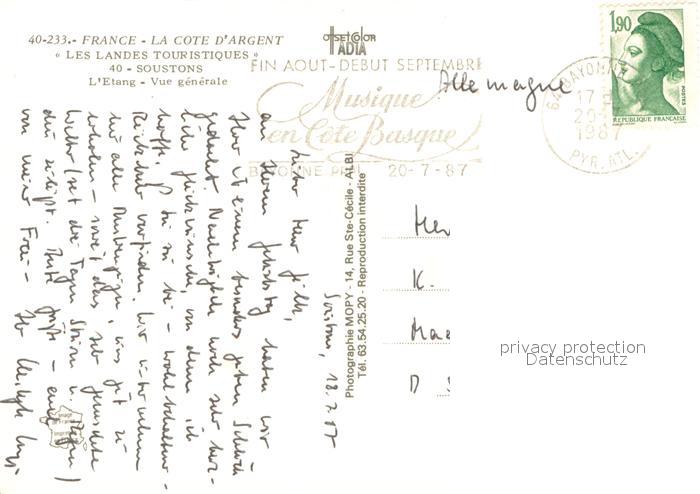 13711732 Soustons Etang Vue generale aerienne postalisch gelaufen Erhaltung siehe scans [WerneD78] carte postale Wern Katcode 11170040140310