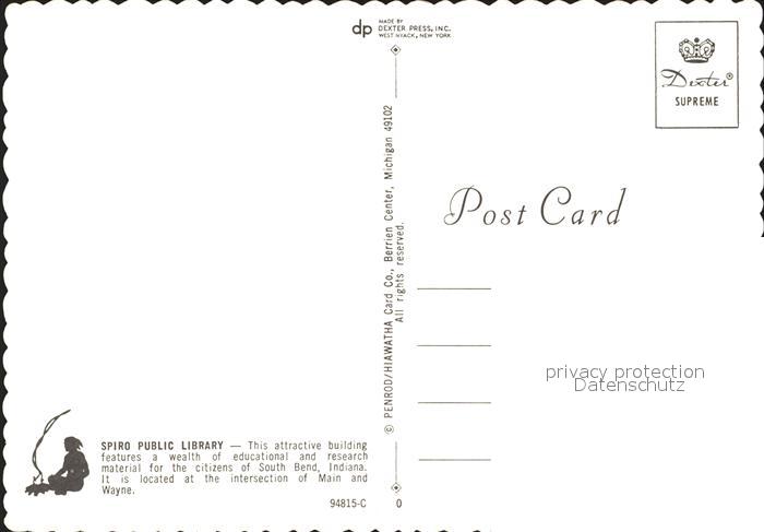 72050340 South Bend Indiana Spiro Public Library postalisch nicht gelaufen Erhaltung siehe scans KatCode: 14140160000000