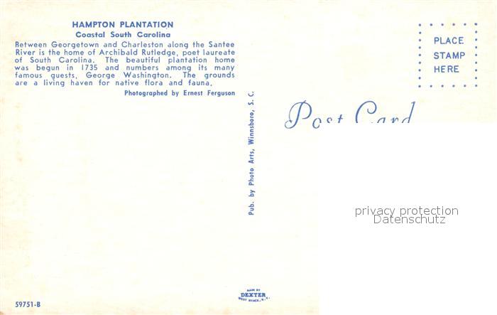 73057878 South Carolina US-State Hampton Plantation postalisch nicht gelaufen Erhaltung siehe scans [WerneD78] KatCode: 14140430000000