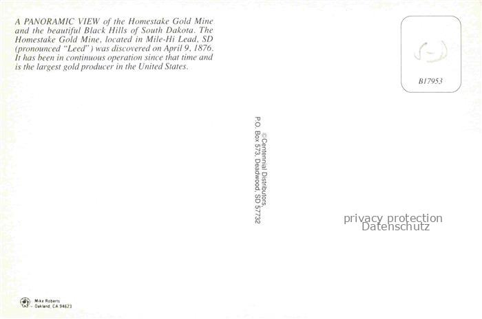 74091277 South Dakota US-State Homestake Gold Mine Fliegeraufnahme postalisch nicht gelaufen Erhaltung siehe scans [WerneD78] KatCode: 14140440000000
